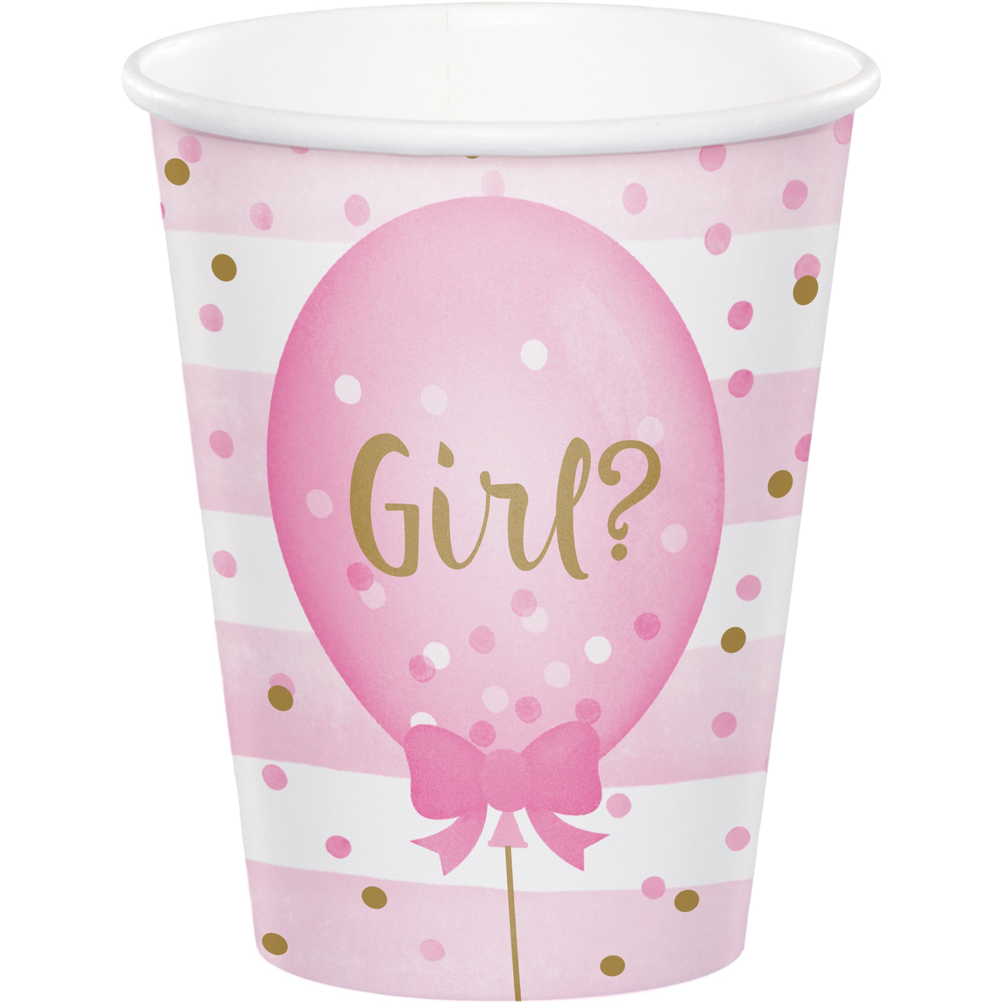 Celebrate the imminent surprise arrival of a little one. With a split blue/pink design featuring pink "girl" ballons and blue "boy" balloons they'll brighten up any gender reveal party or baby shower. The cups have a blue front and a pink back (or the other way round depending on how your looking at them!)