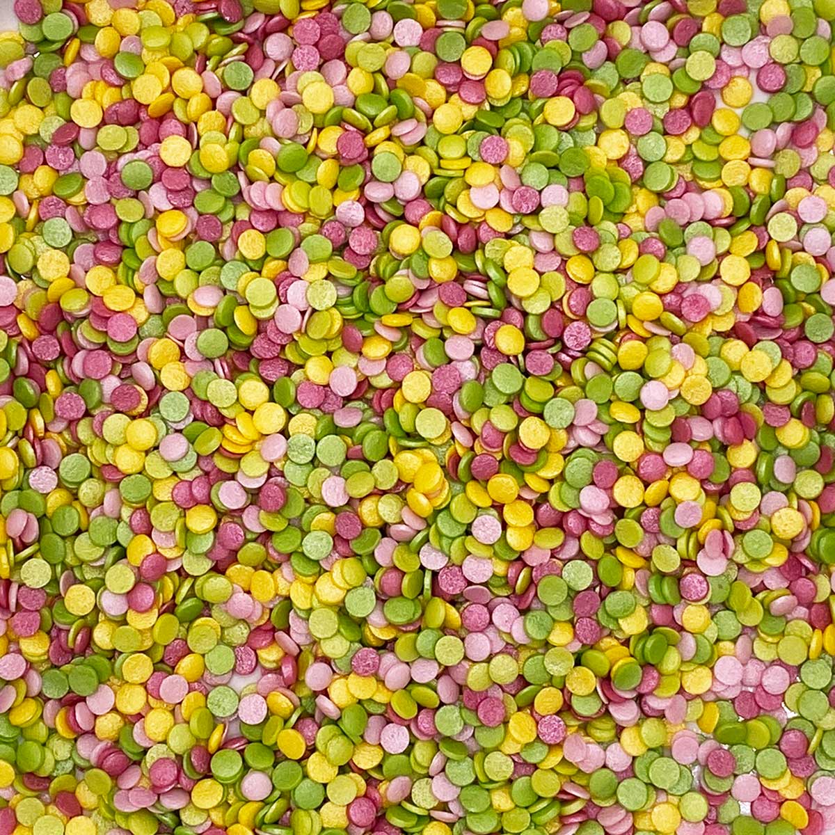Add a splash of colour to your desserts with this 50g pack of luxurious spring-themed cake and cupcake decorating mix, featuring glimmering pastel-hued sugar confetti.