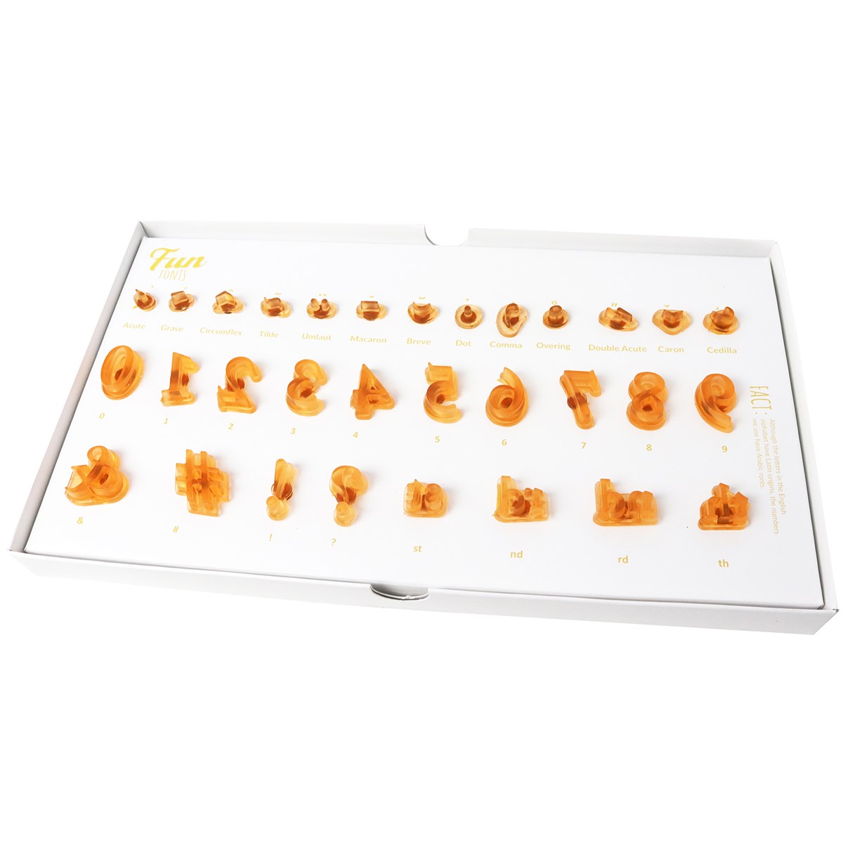 With 31 numbers, punctuation and accents this fonts-number set lets you create any messages you could want with ease. The 12 different accents accommodates a wide variety of languages, as well as a multitude of occasions to stamp your cakes with whichever occasion you wish to celebrate.
