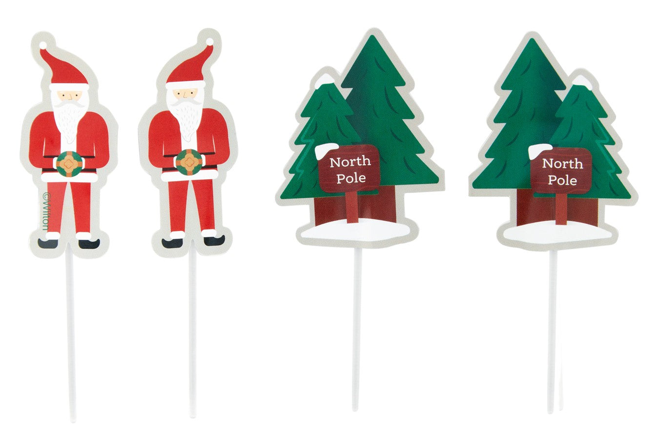 Add a finishing touch to your cupcakes with these santa and north pole signpost picks.