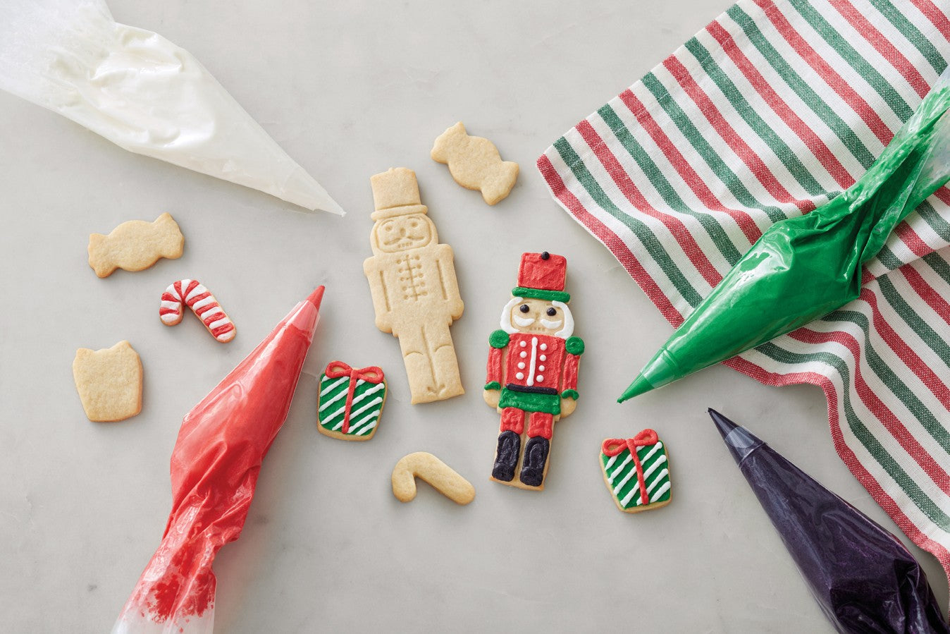 After baking, trace along the embossing with icing to decorate your nutcracker cookies perfectly.