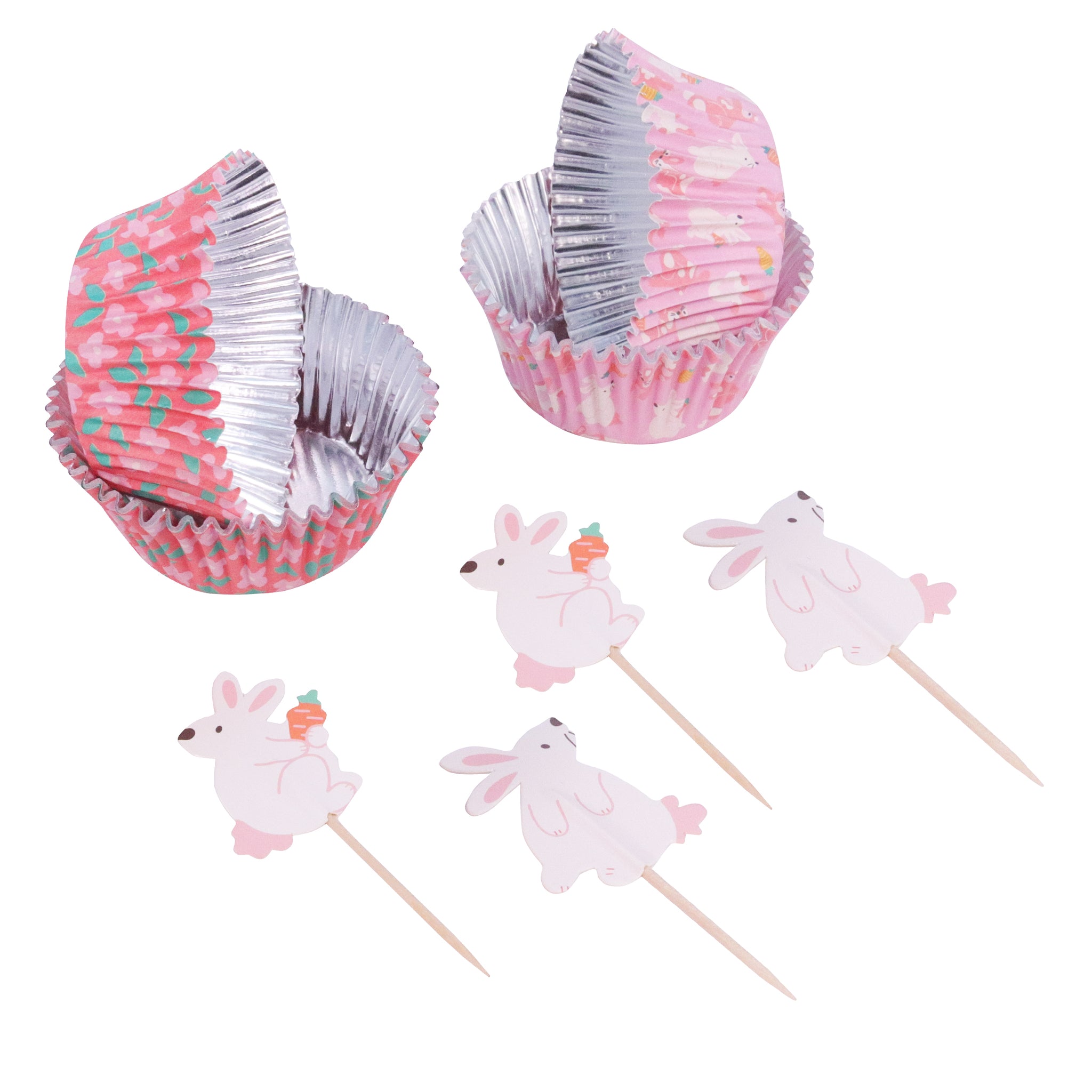 EASTER CUPCAKE CASES & TOPPERS SET OF 48 - EASTER BUNNY