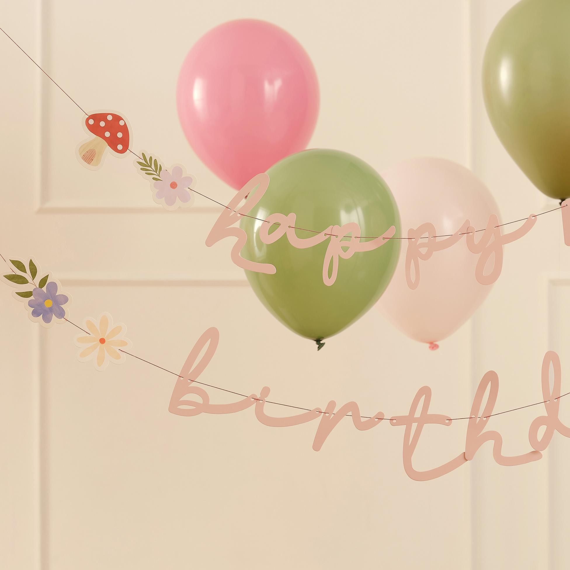 1 x pink 'happy birthday' card bunting with florals and customisable numbers 0-9 at 2m long
