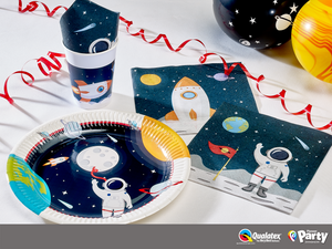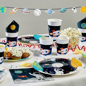 Handy Pack of Space theme matching party Tableware to make your party planning super easy ! Pack contains :