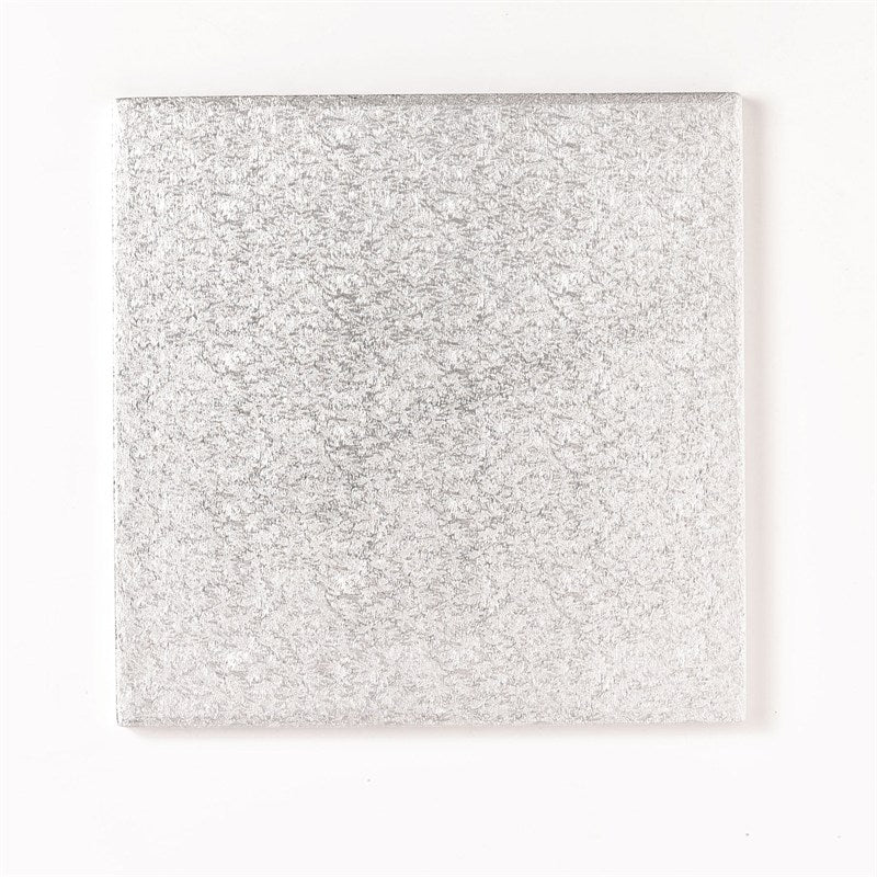 A baking essential. Sometimes referred to as a Cake Drum, this is the strongest type of Cake Board. It has a bonded fibre board inner which is covered on the top and sides with a fern textured, silver coloured foil and with white paper on the base. The finished Cake Board is 0.5'' (13mm) thick